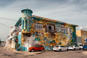 Willemstad ist nicht nur für die berühmte Handelskade bekannt, sondern auch für die vielen schönen Viertel wie Otrobanda, Punda und Pietermaai. Die Innenstadt und die umliegenden Viertel kannst du entweder zu Fuß erkunden oder du buchst dir eine geführte Tour mit einem E-step. Unsere E-step-Tour startet gemeinsam mit Curt, unserem Guide, entlang am Meer Richtung Zentrum. Curt hat uns außerdem eine Menge zur Geschichte der Stadt, der einzelnen Orte sowie zu den vielen Streetart-Gemälden erzählt. Willemstad gehört übrigens auch zum UNESCO-Weltkulturerbe mit der berühmten pastellfarbenen Kolonialarchitektur und der Handelskade.